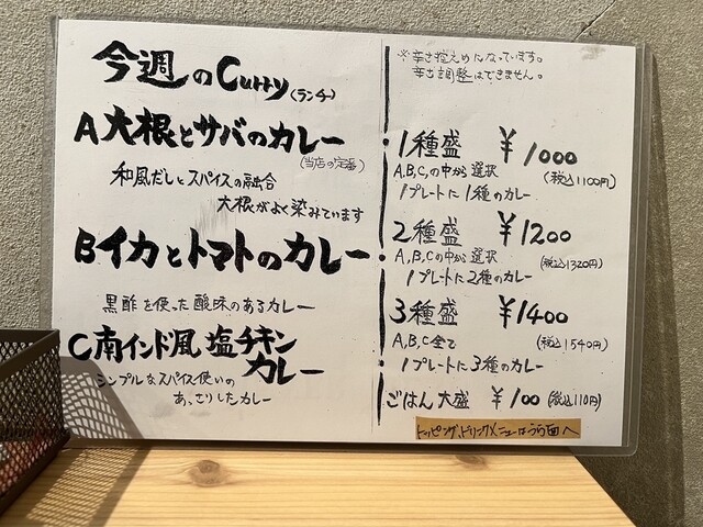 ✅大根と鯖のカレー¥990の1種盛り一択!