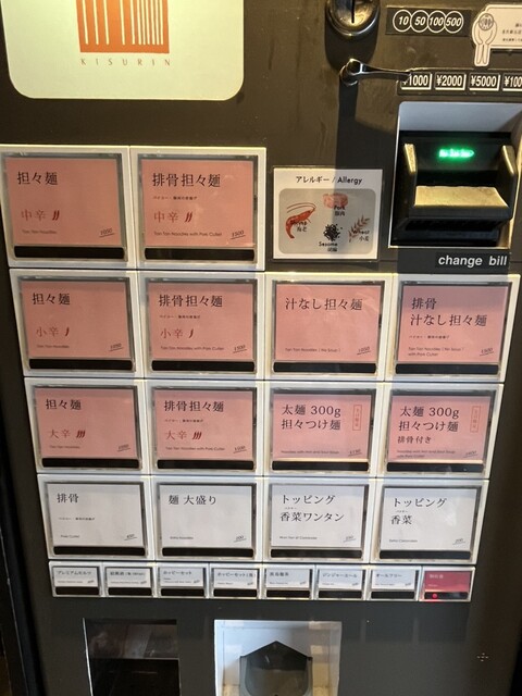 券売機の上に紙エプロンと温おしぼりを完備♪