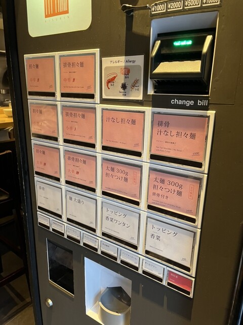 券売機の上に、紙エプロンと温おしぼりを完備♪