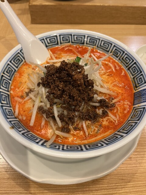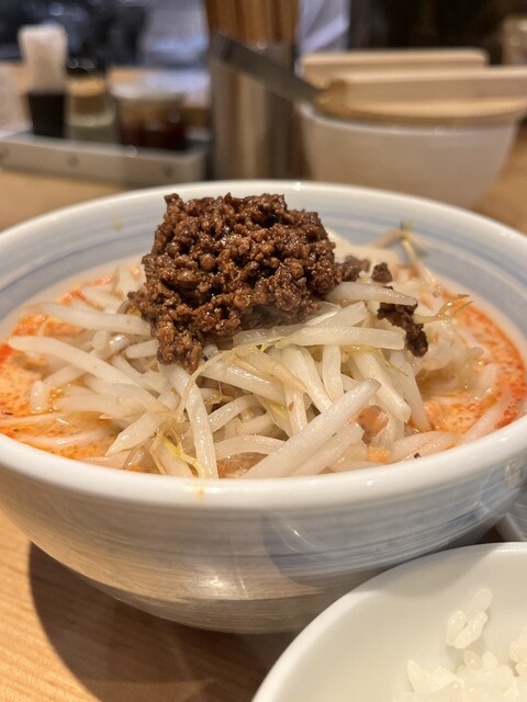担々つけダレは、濃厚ではないものの白胡麻ペーストでクリーミーなコクと多少酸味が感じられ、定番の肉ミンチに野菜炒めが大量に入っています。