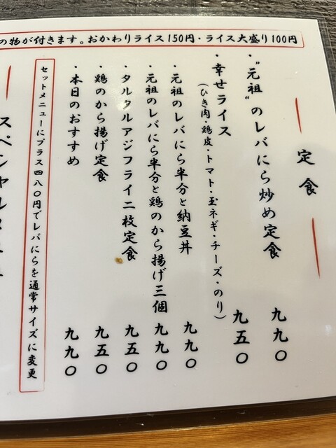 ※元祖レバニラ炒め定食、3月迄は¥990→