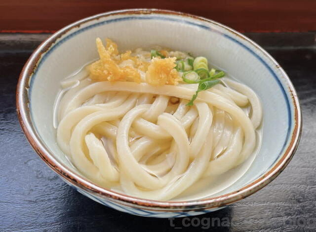 店内はセルフ方式。ワタシはかけうどんをひやあつで、同行者はあつあつで。レジまでの間にゴハンものや天ぷらがあるが、スルーした。