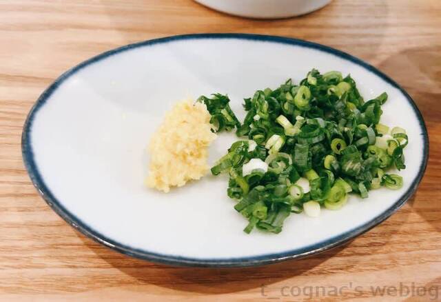 薬味のたぐいは別皿に盛ってくれている。好みのタイミングで好みの量を加えることが出来てイイ。