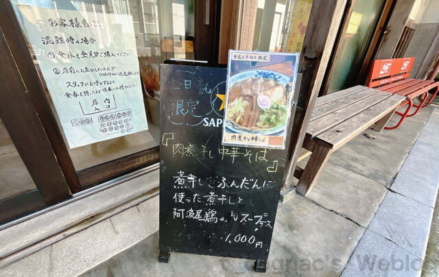 さて前置きが長くなってしまった。店先には土日祝限定「肉煮干し中華そば」のPOP。