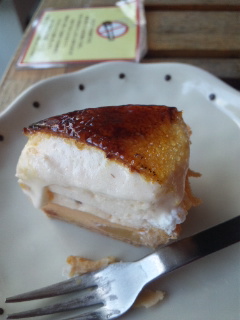 ホールを買いお店の人にカットしてもらいました。(6等分)。上のブリュレは注文してから火を入れるそう・・・こだわりです。