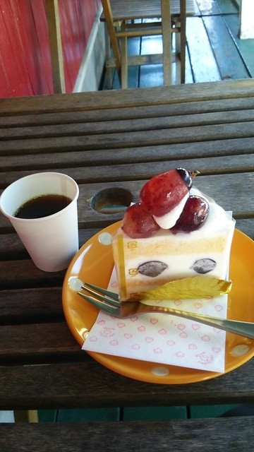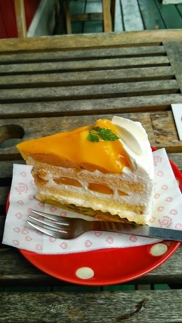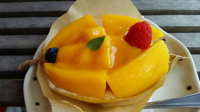 ブルーベリーと悩んだけど・・・マンゴーショートケーキの色鮮やかさにひかれ注文。