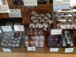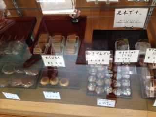 早速行きます。朝9時過ぎだったのでガラスケースに和菓子がたくさんあります。