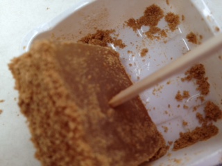 手に取るとずっしり。粉をこぼしながら食べます。うん。美味しい!!