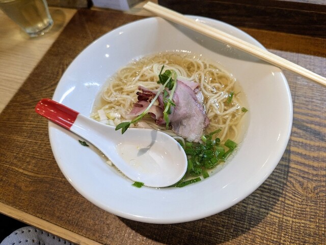 純とは、動物系無しの煮干だけのスープと、記憶してます。かえし無しの塩ッパ旨いのも好きだが、清湯タイプの純煮干蕎麦は、格別な一杯❗