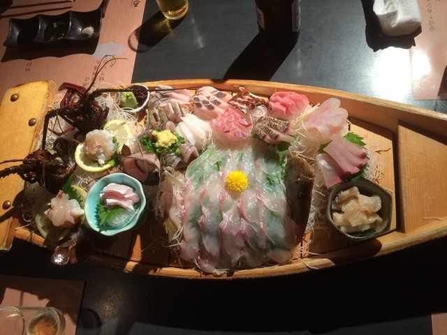 "主菜の地魚大魚船盛り"