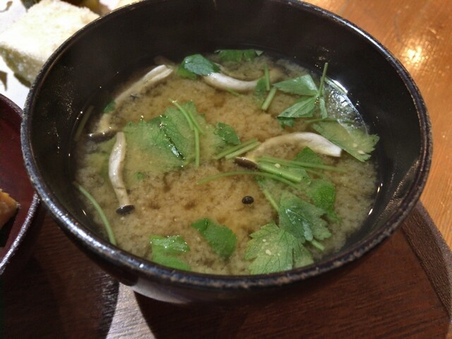 "豆腐しめじ三つ葉の味噌汁"