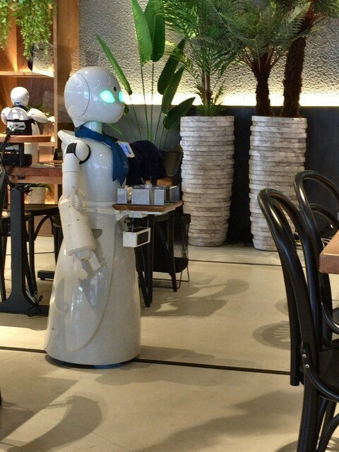 そう、あちらこちらに、数体のロボットが居る店です・・・