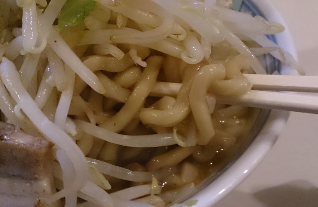 この太さなら、チャーシューとモヤシをある程度やっつけてからが、丁度いい柔らかさかも