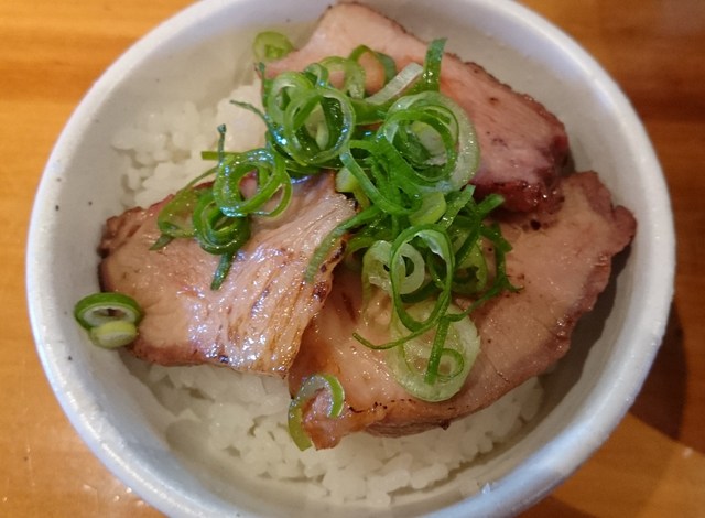 ライス(白飯)を頼むと、チャーシューが一枚のってくるので