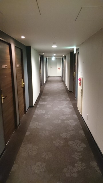 ホテル内廊下です。お洒落な木質系ドアはイイですね!