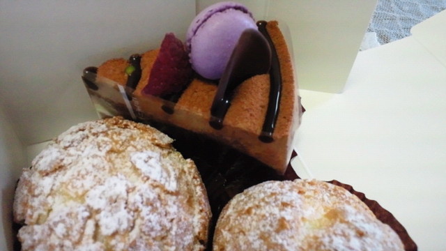 福岡のケーキの名店は数々あれど、ここは私の中で別格☆実家から歩いて5〜6分福岡市営地下鉄赤坂駅すぐ中央区大名にある 【patisserieJacques】 リニューアルして約4年です。 仕事の帰り実家に立ち寄る際発見!! それ以来のファン 前はジェラートもありました。キレイな色のマカロン達がお出迎え。とにかく目移りしちゃう店内休日で、お客様もイッパイです。マカロンがのったチョコのケーキ。濃厚なチョコですが、口どけがすごくイイ☆長女(姉)が選んだイチゴのケーキムース状のクリームにイチゴのソースがサッパリ。次女(姉)の選んだマロンのケーキ。マロンクリームが、甘すぎず中のクリームと溶け合って最高です。秋になると、これとは別に「モンブラン」が出ます。毎年メッチャ楽しみにしています。・・・去年は食べ損ねちゃいました。母が選んだ、シュークリーム・・・撮ろうと思ったら、父がかじって無残な姿にここに原型が・・。Deliciousなジャックのケーキで大満足でした。パティスリー・ジャック【patisserieJacques】