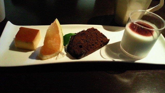 江戸の時代 小倉〜唐津を結ぶ唐津街道「赤間街道」でもありますが、その宿場町赤間宿として知られるところ、旅籠であったであろう建物がこのお店。【DININGGARDEN庫裡】ダイニング ガーデン くり門扉からこじんまりとした玄関口まで木々・草花がお出迎えします。 中に入ると広々とした空間。当時の梁が、むき出しで情緒ありです。ゆったりとした間隔でテーブルが配置されています。奥は、竹林をのぞむ窓に沿う長ーいカウンター。2階に上がる階段も広く、吹き抜けになっているので心地よい店内です〜。ランチプレート 30食限定 1350円(税込)これは、9品の前菜たち〜〜〜。これだけで、かなりの満足感ありありでした。※細かい内容が知りたい方はコメにて受付中。(ながーくなりそうだったので省略〜@(;・ェ・)@ノ…)メインはお肉・お魚からお選びください。←こちらは、牛フィレのジャポネソース。 パン or ごはんスープ or お味噌汁 をお選びください。こちらは、真鯛のソテーでございます →私は、魚派〜(´∀`)ノ '`ィこのトマトのスープ(ミネストローネ)もパンも美味しい!!!魚が良く見えないじゃん!!っと言った・・・そこのあなた〜〜〜!!のためにハイこちら・・・↓↓さてさて〜〜〜(*`・ω・)ゞいよいよぉぉぉぉぉ〜わたくし的 メインでございます〜(ノ∀≦。)ノぷぷ★左から 豆乳プリン・グレープフルーツ・チョコのパウンドケーキ・パンナコッタ です・・・ホゥホゥ(o-∀-))どれも手を抜かないこだわりを感じます。豆乳プリンは、しっかりまったり〜私好みでした。丼イッパイ食べれそうな感じ・・・・(。-`ω´-)ぅぃあッ!!コレにコーヒーor紅茶がお選びいただけますます〜〜〜。o@(^ゝω・)@o2階にあった上がり座敷です。あまりの可愛らしさに「ぱちり」☆彡スタッフさんの対応もGOODで美味しさ倍増でした。お野菜は地のモノにこだわったお料理お味もわたくし的には〜+*゜。*。゜*+—+*゜。*。゜*+—+*゜。*。゜*+—+★3つッ!!とさせていただきます+*゜。*。゜*+—+*゜。*。゜*+—。食べログ検索↓【DININGGARDEN庫裡】