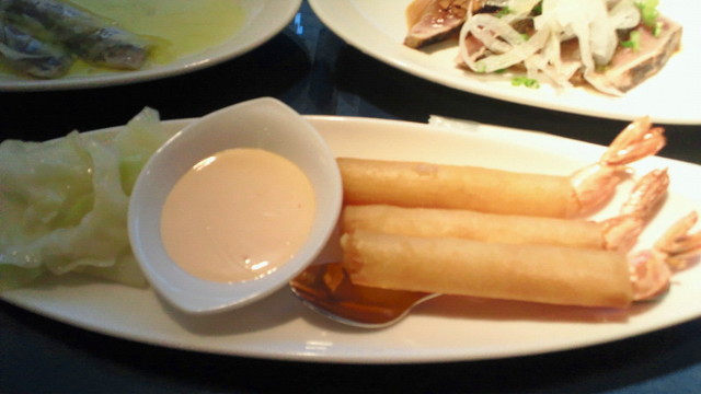 えび春巻き☆アツアツ〜でぱりぱりです〜このソースはハバネロ入り・・(ーー゛)どっかーんっと汗が出ます・・。