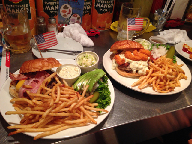 私はアボカドバーガー、彼はベーコンチーズバーガーをチョイス!