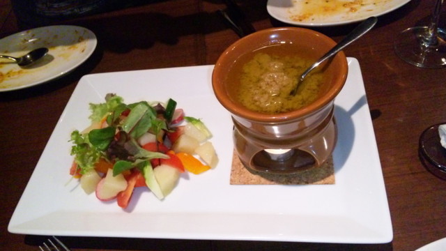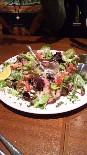お肉に脂身がかなり多くて、脂身が苦手なあたしは少し残念でしたが………レモンを絞ってサッパリ食べるこのサラダは、ボリューミィなのに重くない。