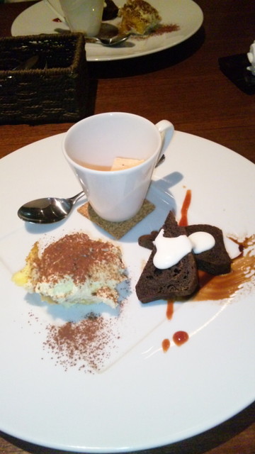 魚料理でもう一品、後デザートで、ガトーショコラと、パンナコッタと、もう1品頼みました!!