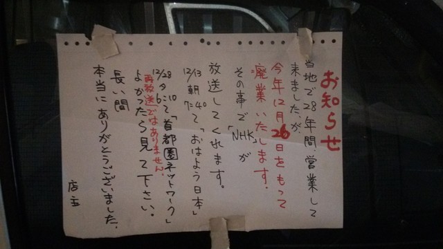 悲しいお知らせです、また一つお店の灯が消えようとしてます