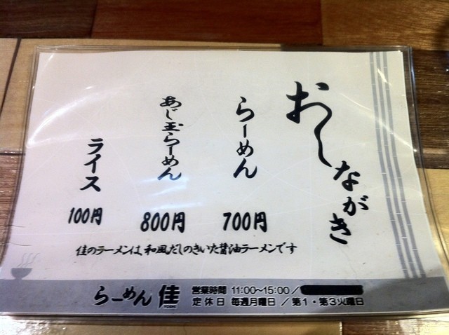 最近は営業が昼の時間帯のみになったようですね。入口の表示もメニューの表示もそうなってます。