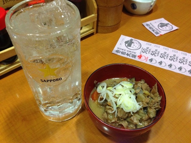 ハイボールダブル、もつ煮