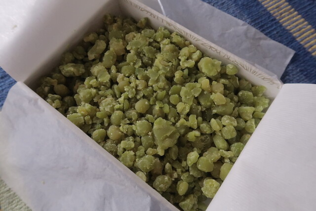 家に帰って食べてみると、えんどう豆の風味香りが高く、ふんわりと柔らかく口の中でホロホロとほどけていく。ほど良い甘さもあって止まらない。こりゃぁ、ずんだよりよっぽども旨美味いぞ。それほど高くなかった気がする。もっと買ってくれば良かった。