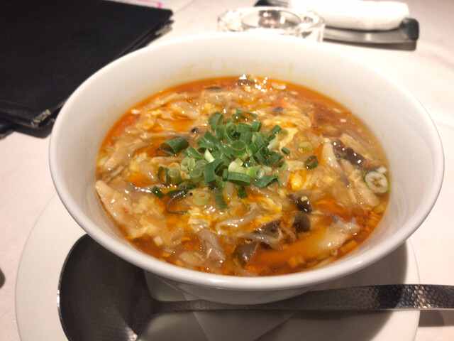 こちらは、街中の洋風居酒屋と言っていいと思いますが、熊本の中華料理で有名な、紅蘭亭の姉妹店であります。 紅蘭亭は上通りにも下通りにもありますが、その二ヶ所では酸辣湯麺はされていません。 つまり、紅蘭亭の酸辣湯麺はここでしかたべることができません。 以前より、美味しいというのは知っていましたが、久しぶりにこちらの酸辣湯麺を食べました。 写真では、判り難いと思いますが、大変深い器に、酸辣湯がたっぷり入り、多種のキノコやタケノコ等が豊富に使用してあり、辛味も、酸味も、旨味も完璧でした。 それでも、味が足らないときは、お使い下さいと、ラー油と酢を一緒に持ってこられるのは東京並ですね。 これは、東京の銀座なら3000円くらいの値打ちがある酸辣湯麺です。 姉妹店と云いながら、本店より美味しいのでは? 店員さん方の接遇もとっても良かったです。