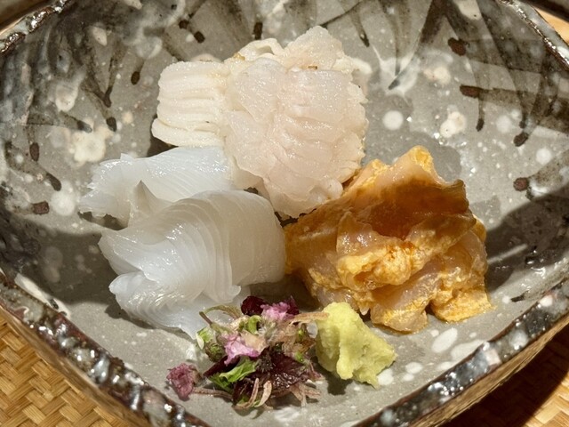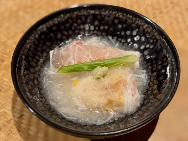 食後に、もう少しお酒を飲もうと、家人と来てみました。裏参道に移ってからは初めての訪問です。すでに食事をしていたので、お刺身を中心に摘めるものといってあとはお任せにしました。お通しは煮凝りと蟹に蟹味噌を...