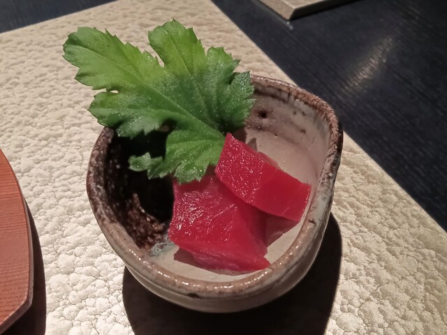 ・先付 蝦夷鮑 車海老 秋茄子 茗荷 生姜ジュレ