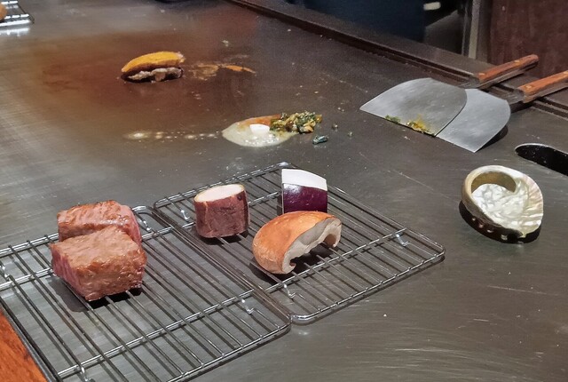 シェフによる目の前でのパフォーマンスは、鉄板焼きの醍醐味。
