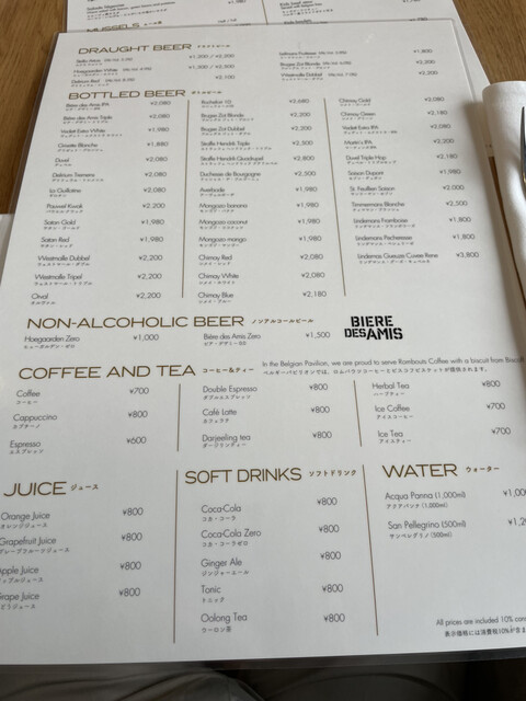 ベルギー館レストラン「REVIVE」は、雰囲気がよく、ゆっくり落ち着いて食事できる。デザートも充実しており、もちろん酒好きも楽しめる。