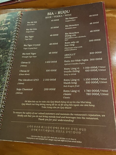 店名の「クアンアンゴン」とは、美味しいレストランという意味らしく、様々な多彩なベトナム各地の料理が、屋台料理から高級料理まで楽しめる。