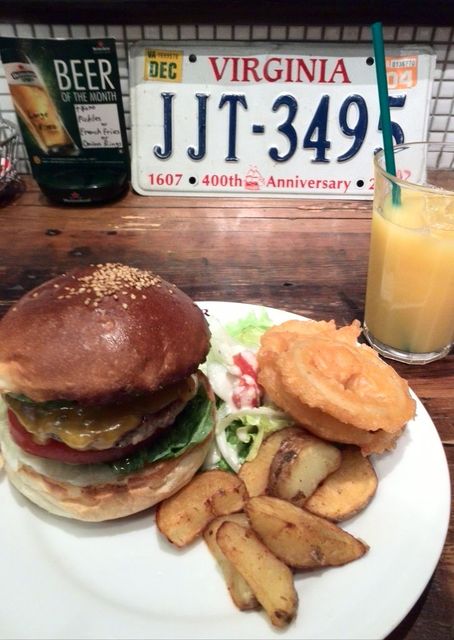 「アボカドチーズバーガー」をオーダー。アメリカンな豪快な感じ。ドリンクとサイドオーダーが付いて1800円ぐらい。こんなダイナミックなバーガーは年末にアリゾナ(セドナ)で食べて以来だ。
