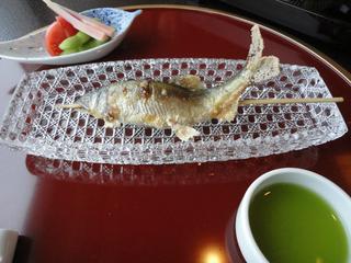 若鮎なので、頭から食べられました。酢のだしにつけてたべるとサッパリとしていただけました。