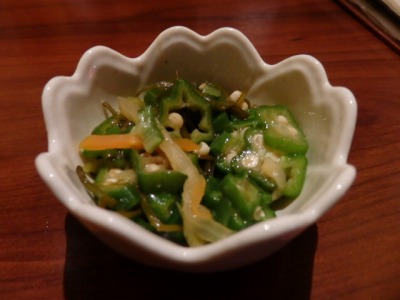 お通しは、ネバネバオクラの和え物です。 380円