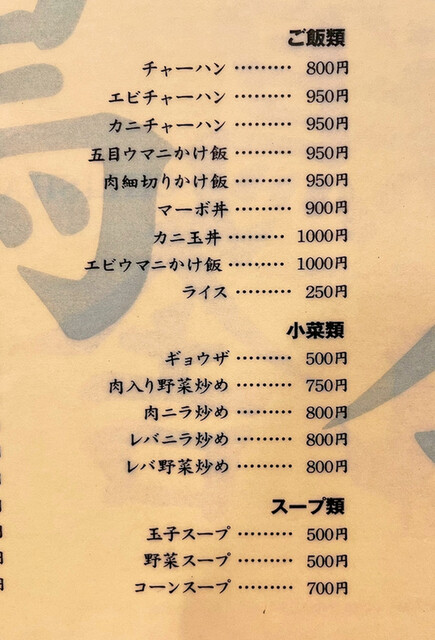 ご飯類、小菜類、スープ類