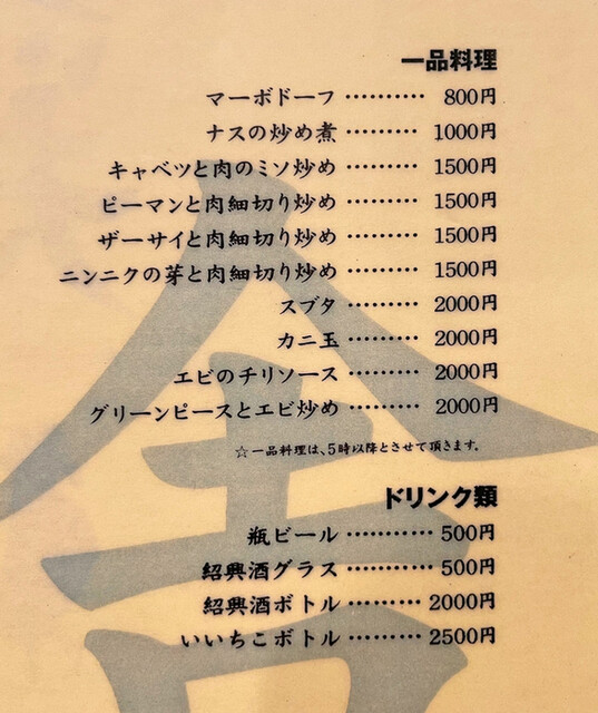 一品料理、ドリンク類