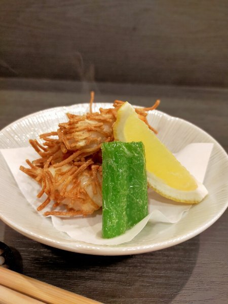 三回目の訪問です。今回も日本酒目当てお邪魔しました。琵琶鱒のカルパッチョ 揚げて薩摩揚げ 鮭のてんぷらとお蕎麦屋さんなのに アテをメインに頼む日本酒は『獺祭』 のど越しがよく本当においしいお酒 琵琶鱒...