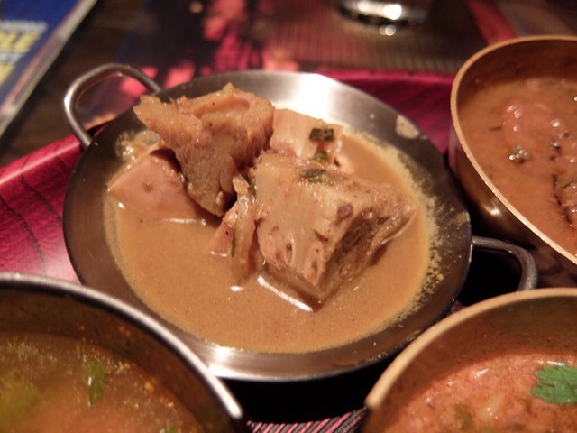 そしてこの店はROCKBARなんです。店主の黒田さんは、大阪カレーシーンでは超有名な方。しかし、真の姿は、ここ『anonymous』で大好きなロックを聞きながら、美味しいお酒を飲みながら、お客様と好きなミュージックシーンを語り合うお店なんですよね~。私も、先輩も大学ではイベントサークルに所属していて、現在でも、音楽業界の方と仕事をすることがあり、これは話が盛り上がらないわけがない。美味しいお酒を頂きながら、黒田さんや、先輩も、自分のミュージックシーンとの関係を熱く語り合い、気づくと2時間近く~。そろそろ明日のこともあるので、締めのカレーを頂かないとね~。