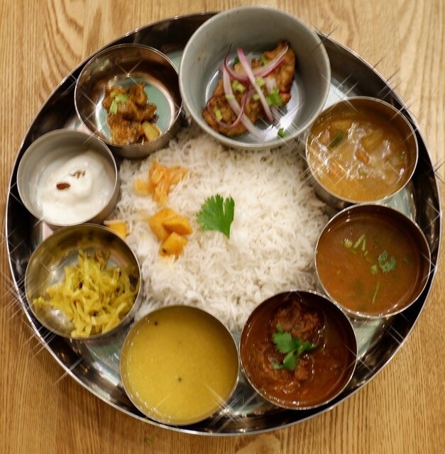 《タリカロ流アーンドラ州スペシャルノンベジミールス アーンドラマトン》《チキンティッカ》で。