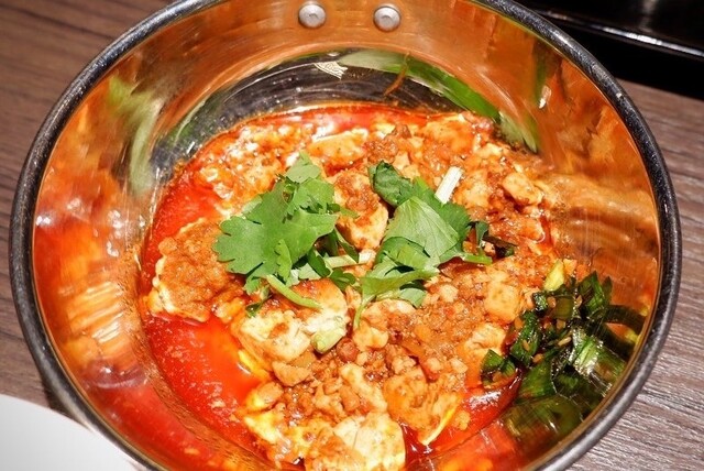トッピングで牡蠣フライの青唐辛子タルタル、麻婆豆腐も追加。