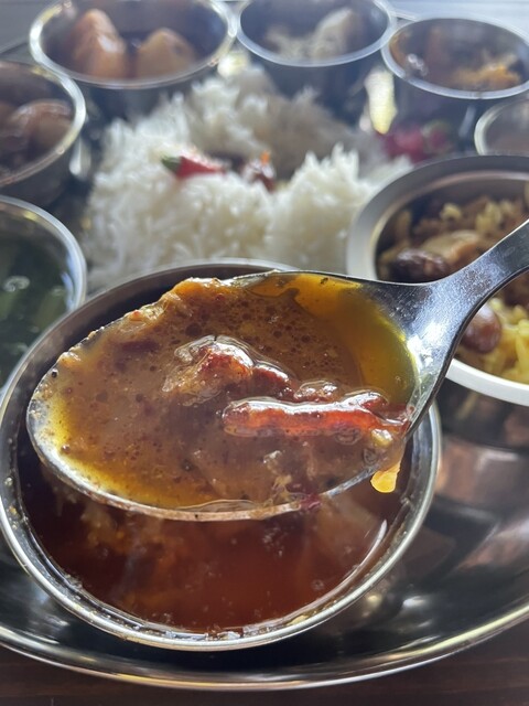 きづくと1時間ばかりのんびりして、店内はほぼ満席。 店主さんの人柄と料理の腕前を楽しむために遠くからのお客さんも多いとか。 テーブルにはガテン系のおじ様たちが。リーダー格の方が手慣れた手つきで手食で楽しむ姿も。 そもそもカシミール料理の『ワズワン』は手食で食べるのが当たり前なそうな。