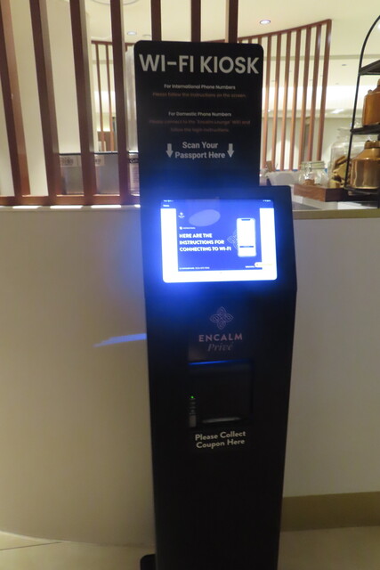 Wi-Fiのアクセスは専用のキオスク(kiosk)マシンが有りそこにパスポートを差し込むと、レシートが出てきて個人のピンコードが頂けます。