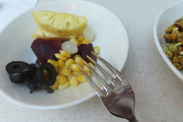 生サラダは封印していただけに、無事に帰れる事になりラウンジでは久々に無難そうなサラダも頂きました。
