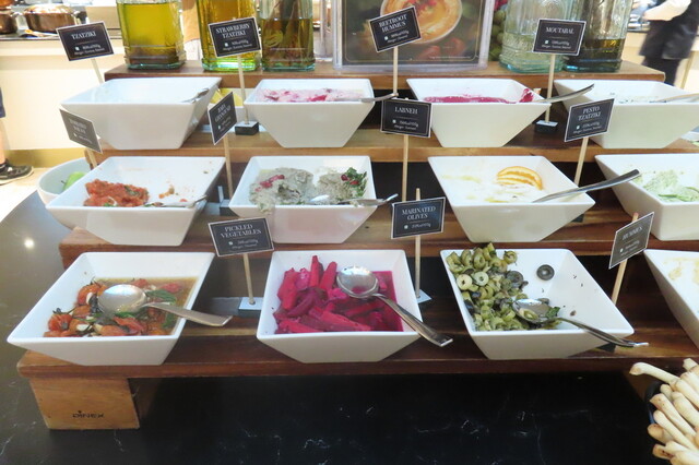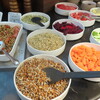 あるカウンターに地元の?方が次から次へと行き、何やら食材を選んで注文するとスタッフが器に数種類の食材を入れ、ソースを入れかき混ぜながらまた色々と加えまたソースを入れかき混ぜ、器に盛り上からはちみつをかけたり・・・