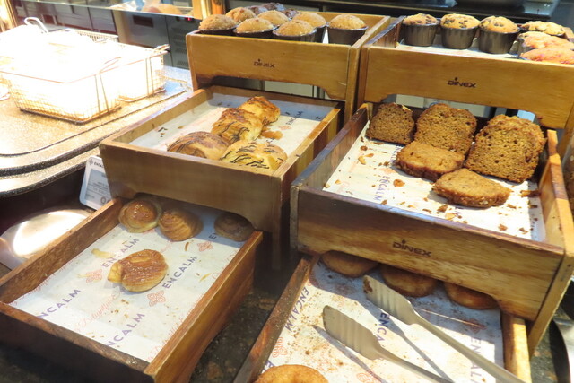 色々なタイプのパン、チーズ、ハム、サラダも豊富。