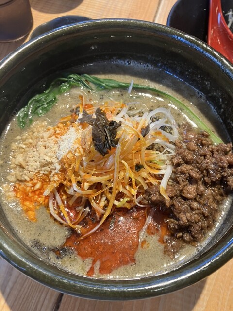 くろ(黒胡麻の濃厚なタイプ)とパーコー汁なしを選択。あと水餃子。